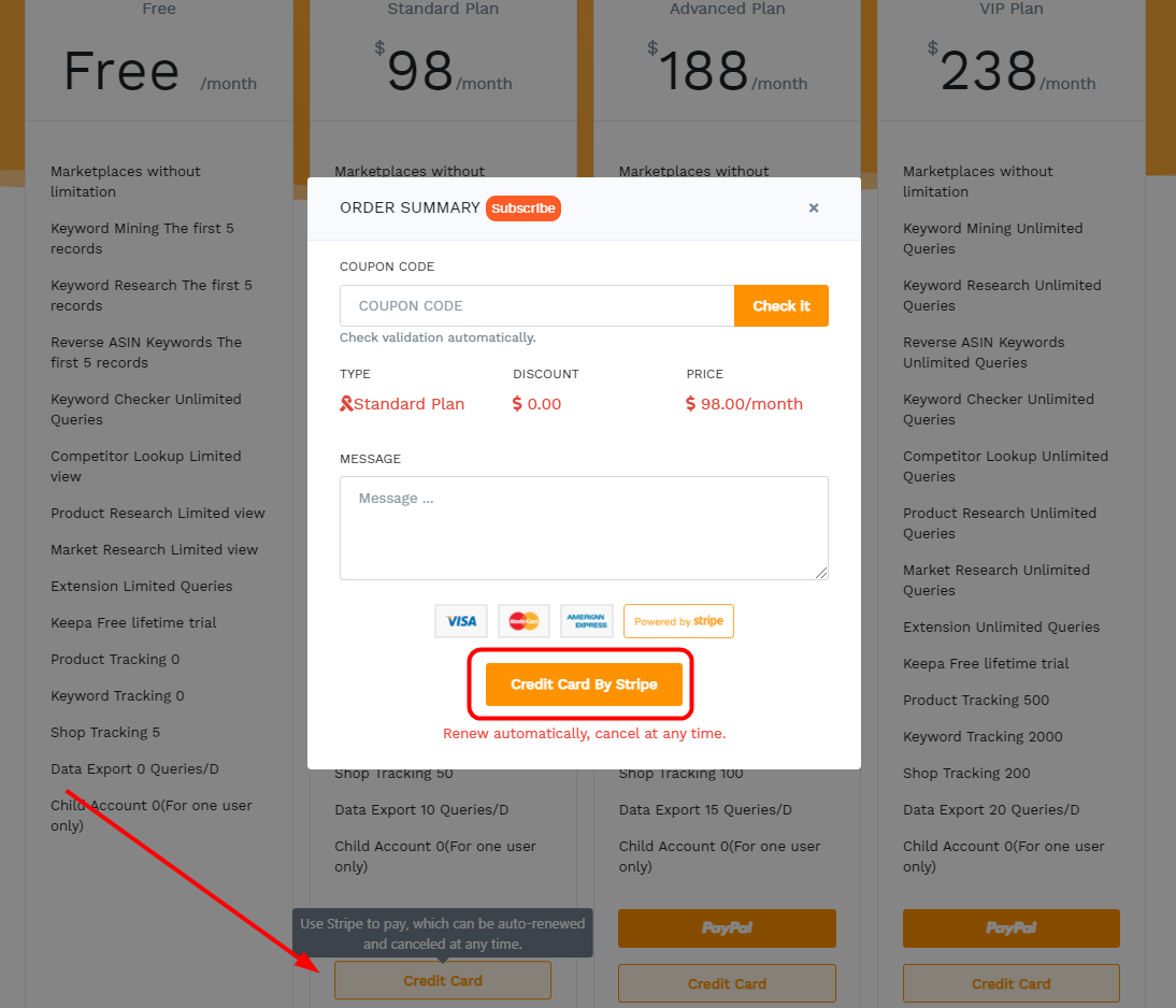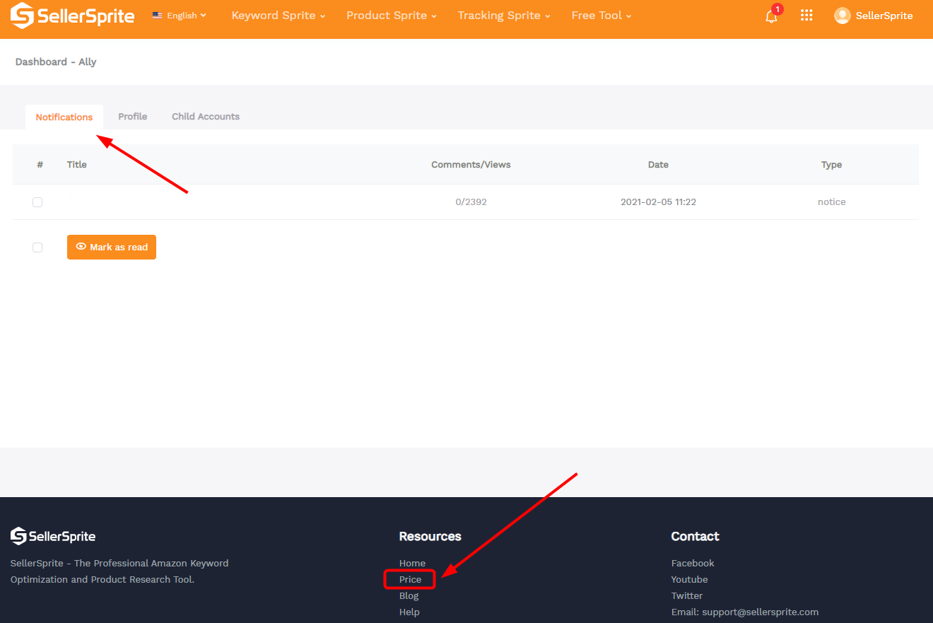 Click the SellerSprite logo on the upper left of the page, and click 【price】to go to the subscription page, or you can also click the【price】to go the subscription page directly.