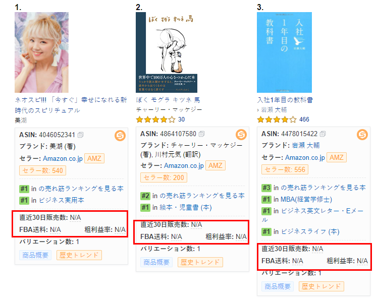 クイックプレビューデータはN/Aを表示する場合は、セラースプライトにログインしていない可能性があります。